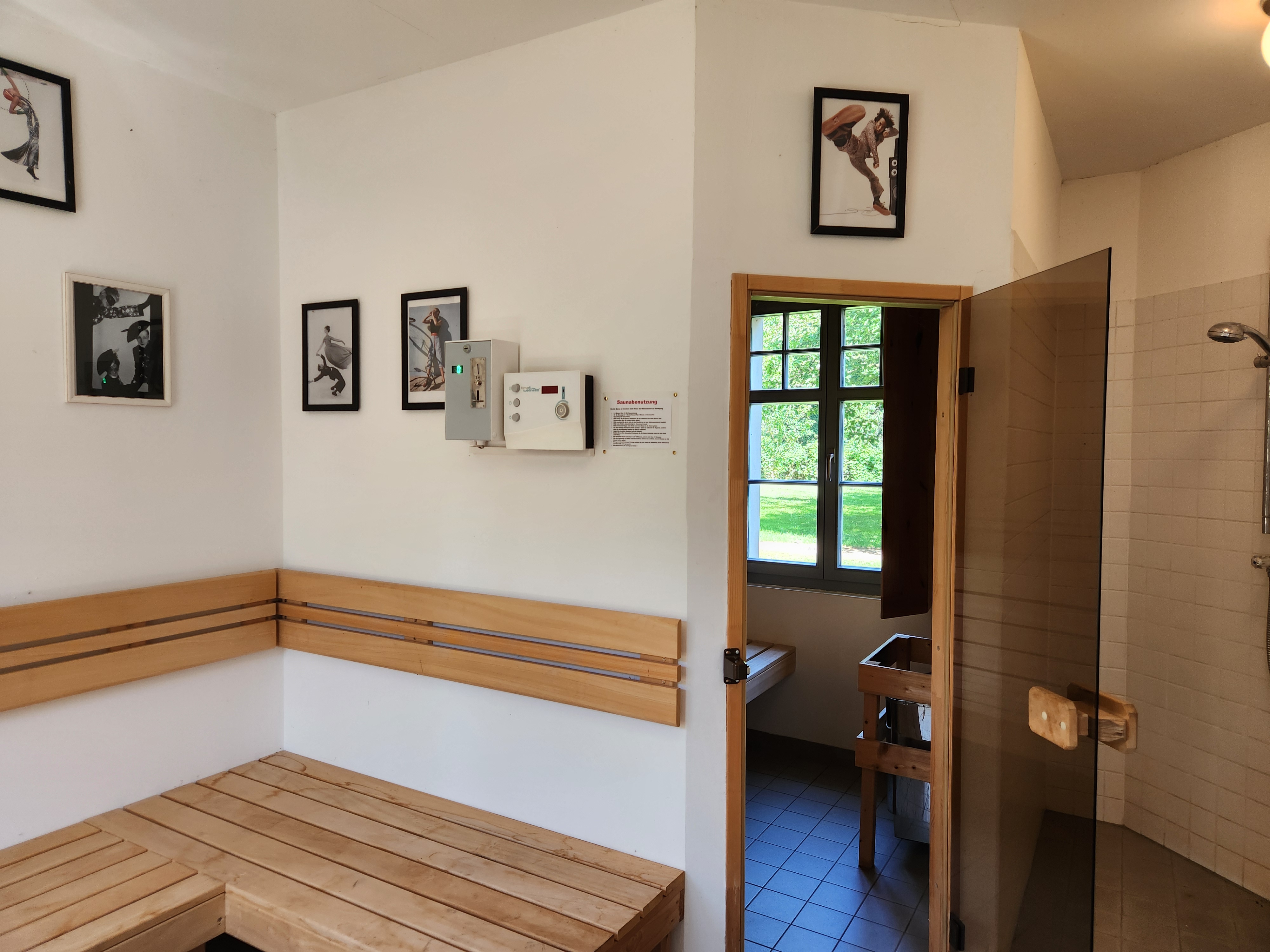 Die finnische Sauna bietet 4 Personen Raum zur Entspannung. Durch einen kleinen Ruheraum gelangt man in den großzügigen Garten. Naturfreunde finden hier Erfrischung!
