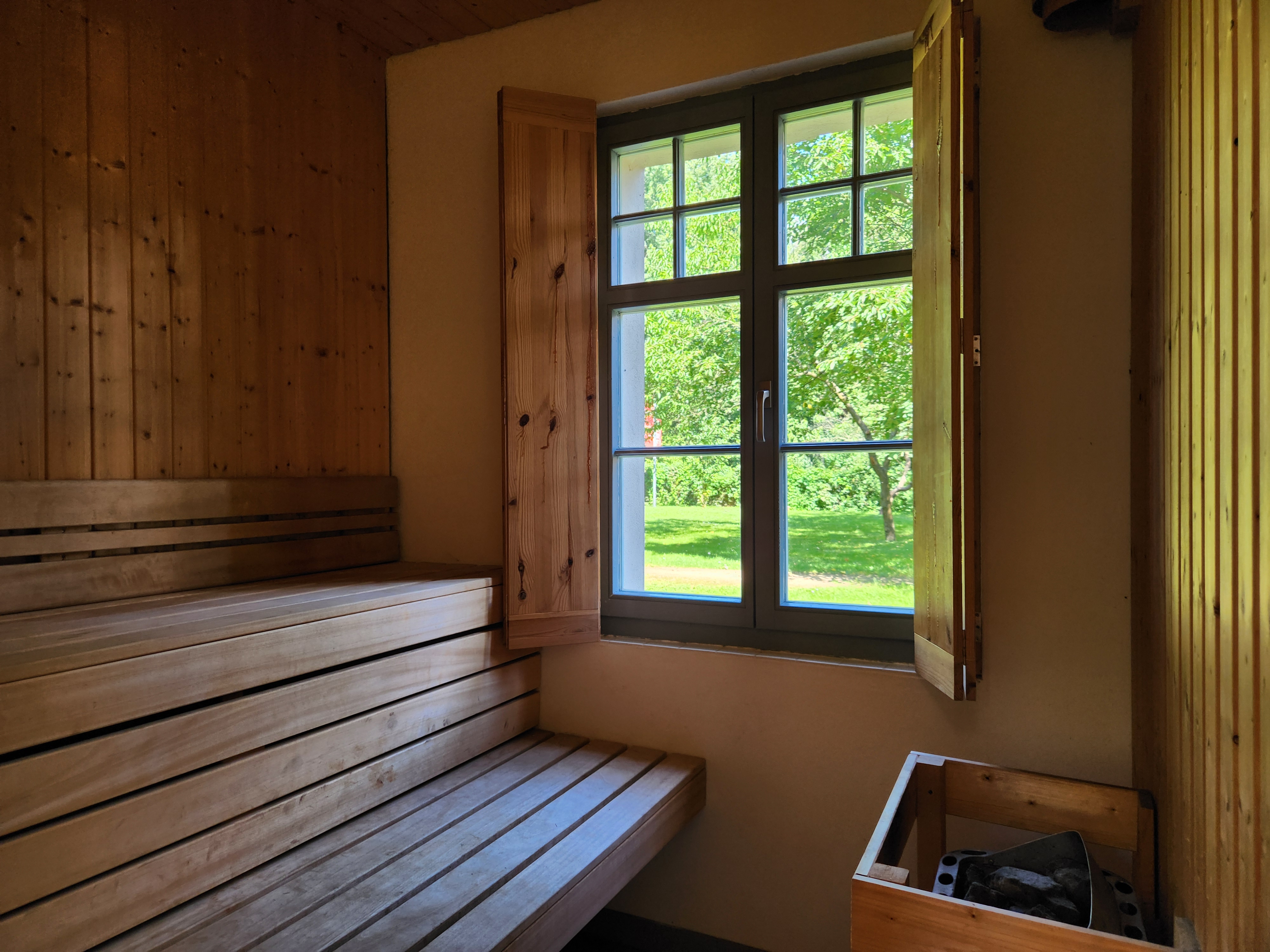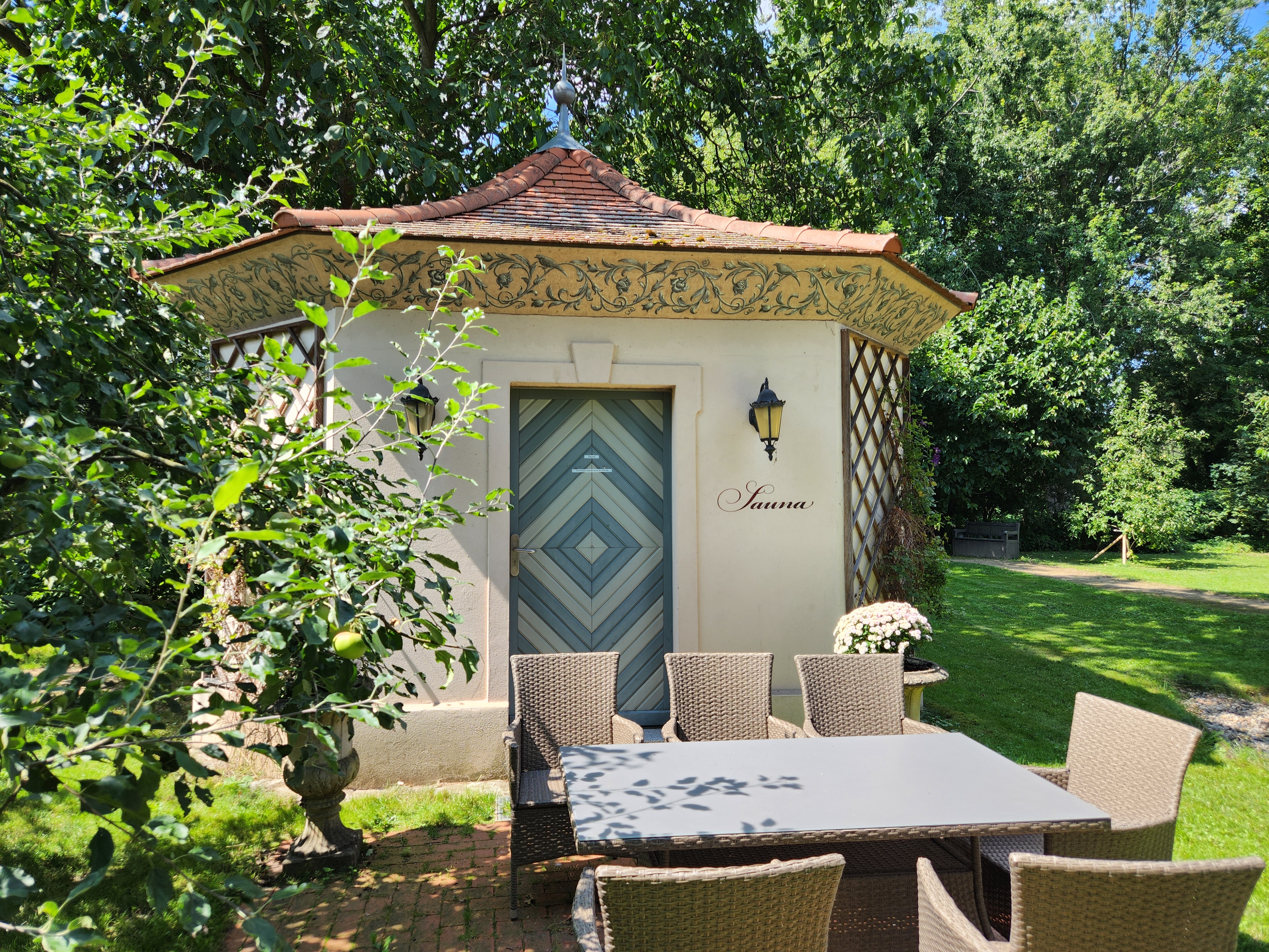 Im Gartenpavillon steht den Gästen eine Sauna zur Entspannung zur Verfügung.