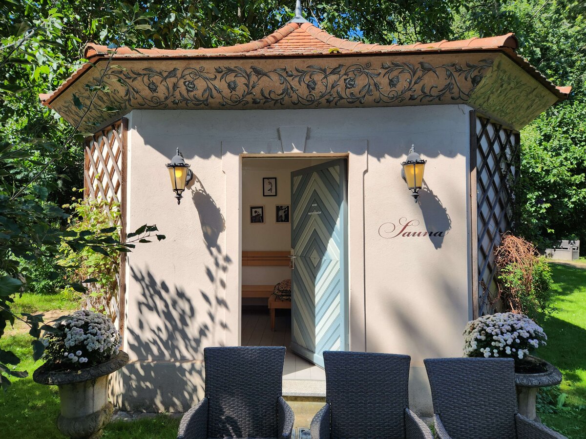 Im Gartenpavillon steht den Gästen eine Sauna zur Entspannung zur Verfügung.